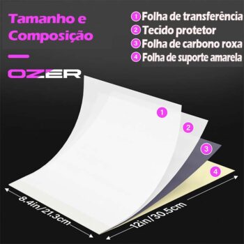 Estencil Ozer – 100 Folhas R$314,91 À vista no PIX ou até 10x de R$34,99 sem jurosLeve seu estêncil ao nível profissional com o Papel Tattoo Stencil Térmico Ozer (caixa com 100 unidades, formato A4). Compatível com impressoras térmicas, com quatro camadas de proteção e corantes premium para transferências nítidas e confiáveis. Em estoque