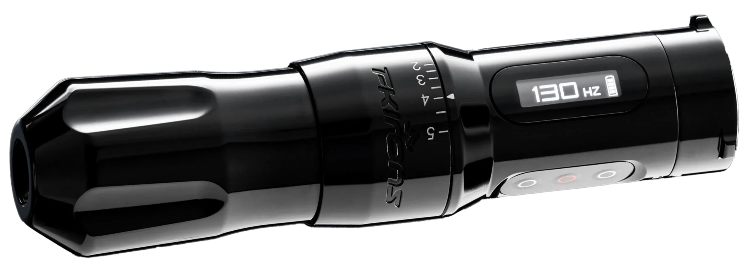 Com um sistema de ajuste de curso em 0,5 mm, você troca de técnica em segundos, direto no corpo da máquina, sem precisar parar a sessão. Do traço fino ao preenchimento pesado, a FK ONE Adjust entrega versatilidade com precisão mecânica.