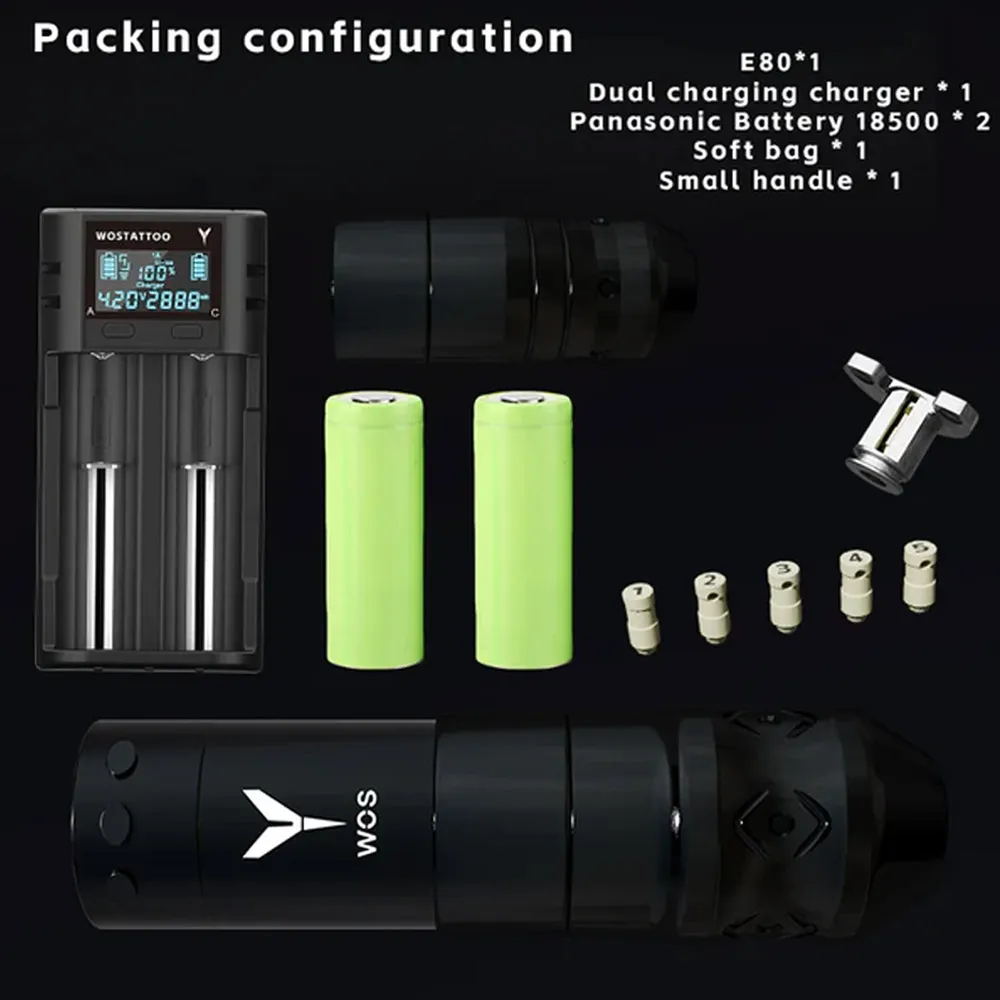 A caneta de tattoo sem fio WOS Warrior E80 foi projetada para tatuadores que buscam desempenho elevado, versatilidade e tecnologia em um único equipamento. Com corpo em alumínio aeronáutico, motor brushless potente e funções avançadas, esta ferramenta entrega controle, conforto e autonomia para o seu trabalho no estúdio.